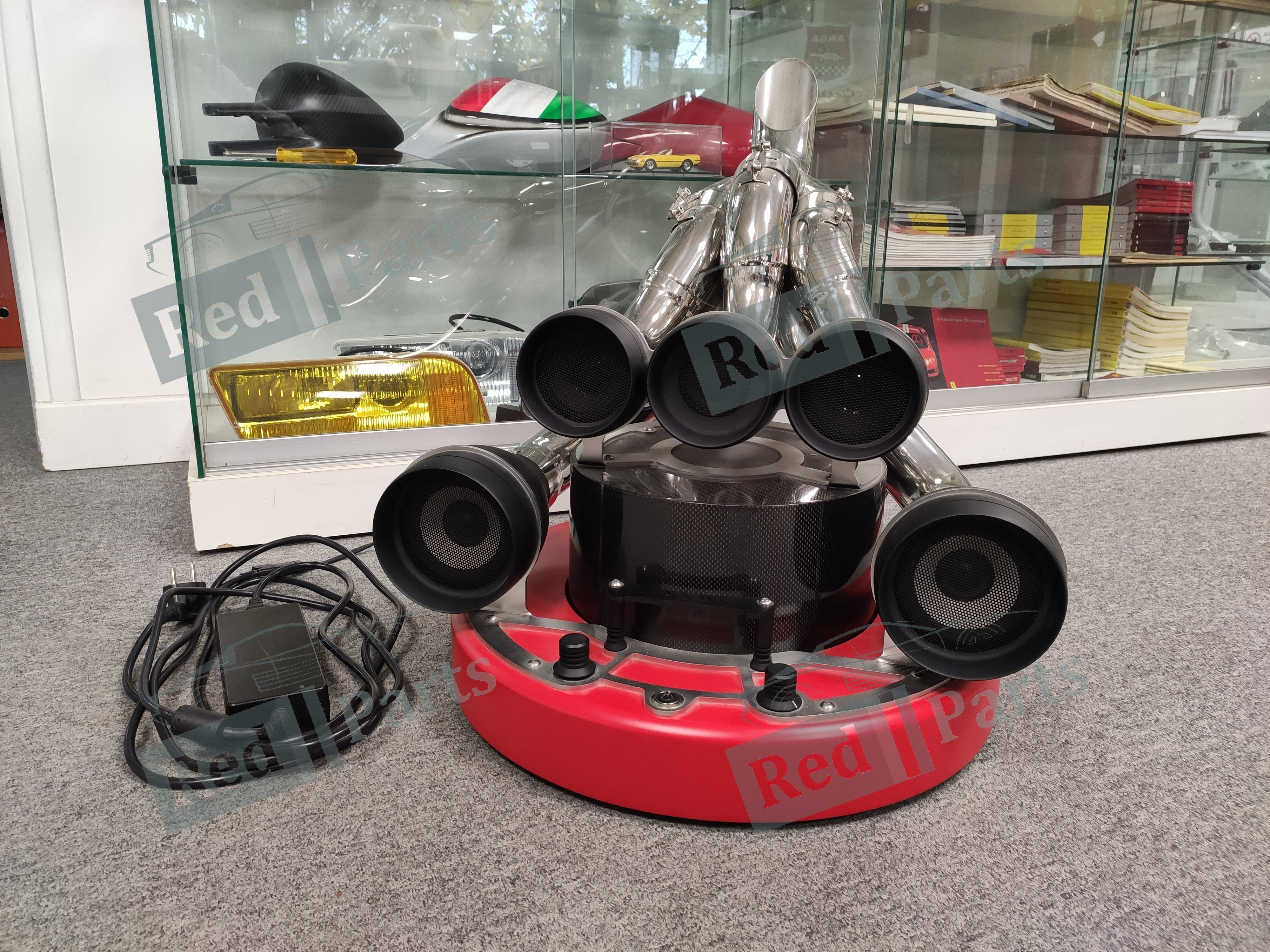 Le XiLO Scuderia est un système audio en édition limitée d'iXOOST, construit sur un châssis monocoque en bois et aluminium. Son élément central réside dans l'entrelacement des tuyaux d'échappement, soudés à la main pour créer une forme complexe qui diffuse un son haute fidélité. Conçu à Modène, capitale mondiale du moteur, le XiLO allie matériaux, formes et design uniques. Équipé de deux haut-parleurs de médium-grave de 10 cm (4 pouces) et 40 W, de deux haut-parleurs de médium de 7,5 cm (3 pouces) et 40 W, d'un tweeter de 5 cm (2 pouces) et 40 W et d'un subwoofer de 20 cm (8 pouces) et 100 W, le XiLO délivre une puissance totale de 200 W.