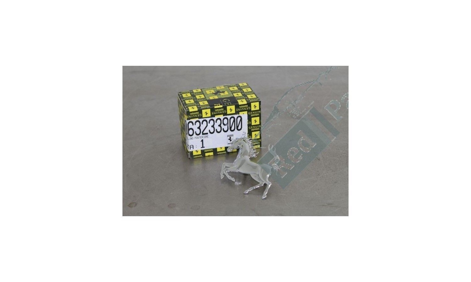 logo Cavallino chromé avant ferrari 308/348/355/365/412/456/512/550/599 (63233900/U) (Pièce Occasion)